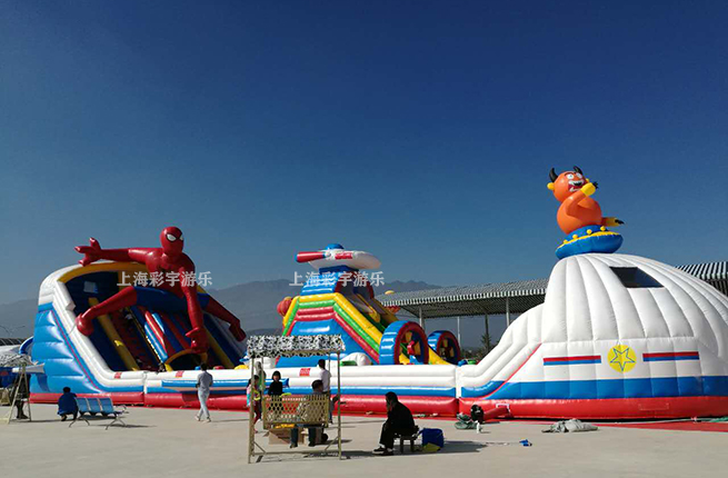 是國內第一批制作生產充氣游樂設備廠家。產品從原材料到生產、測試每一道工序都嚴把質量關。彩宇的宗旨:質量第一、互利雙贏。